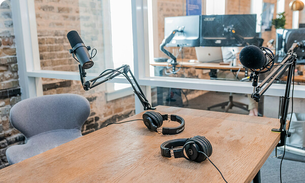 Nudimo najem profesionalnega studia, kjer se lahko snema podkast s personalizirano scenografijo, ter tudi storitve produkcije, postprodukcije, režije, urednikovanja, kreativne zasnove, PR & marketing, upravljanje z družbenimi omrežji in strategije podkasta.